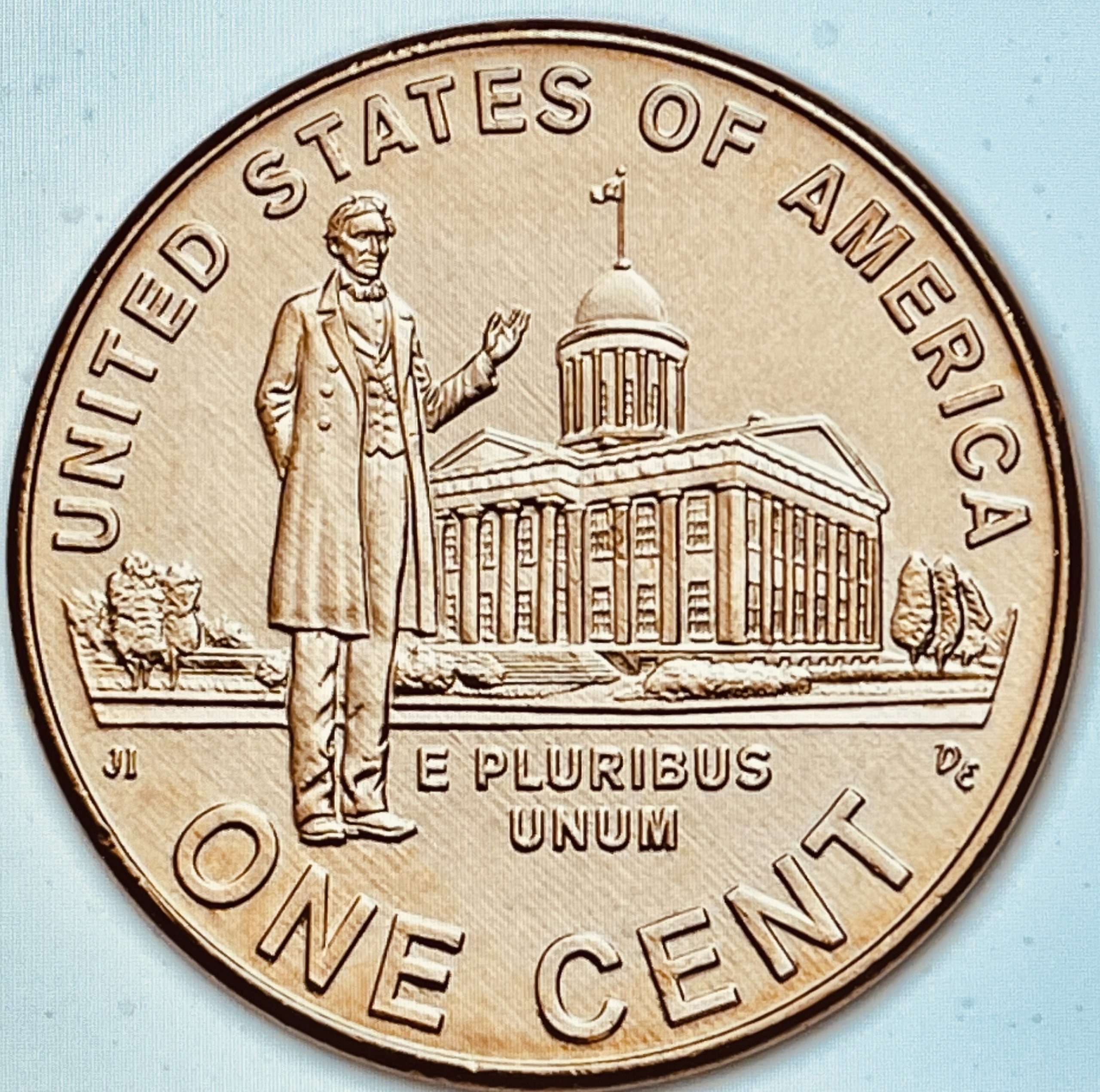 Competition among artists was very intense, as designing one of the Lincoln reverses would become a coin that everyone could see and afford to own. Joel’s design for the Professional Life, depicting Lincoln standing in front of the Illinois State Capitol as a lawyer and a young legislator, was selected. In all varieties of uncirculated and proof, more than 656 million of the coins bearing Joel’s reverse were struck.