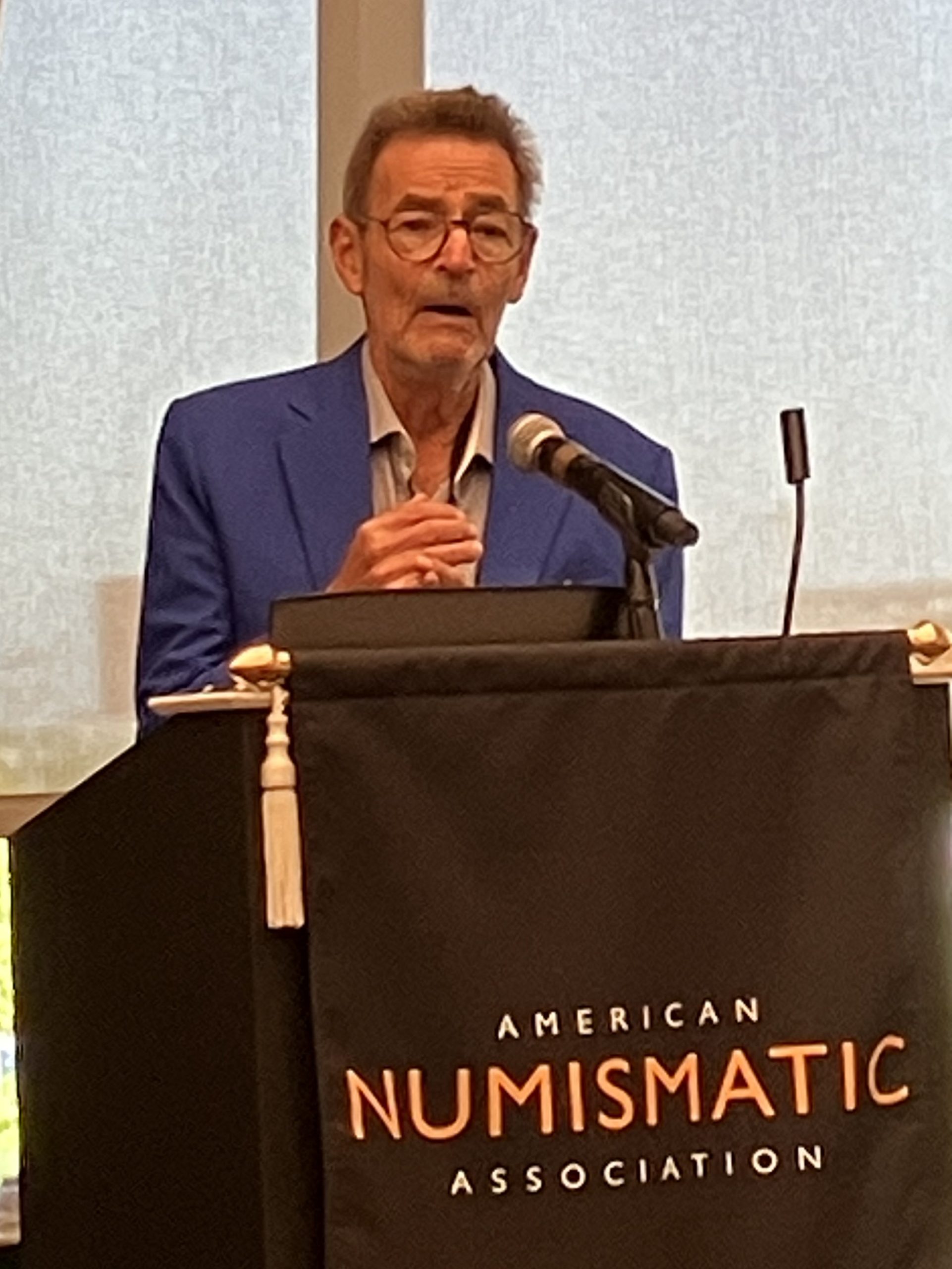 Joel Iskowitz speaking about coin designs at the 2005 ANA World’s Fair of Money in August 2025. [Author’s Image].
