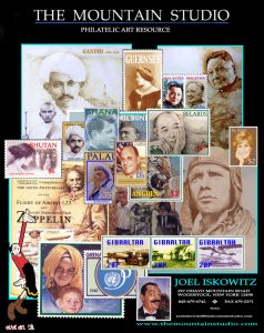 A collage of stamp designs by Joel Iskowitz. Image courtesy of Joel Iskowitz.