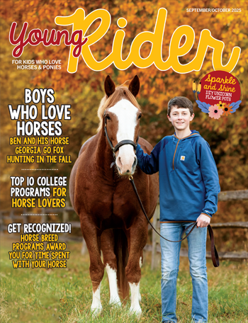 Young Rider is the only magazine of its kind especially for horse crazy tweens and teens ages 8-15. It delivers a fun-filled mix of English and Western riding instruction, horse care tips and stories about real-life young riders, plus horse breeds, crafts, quizzes and beautiful colour posters.