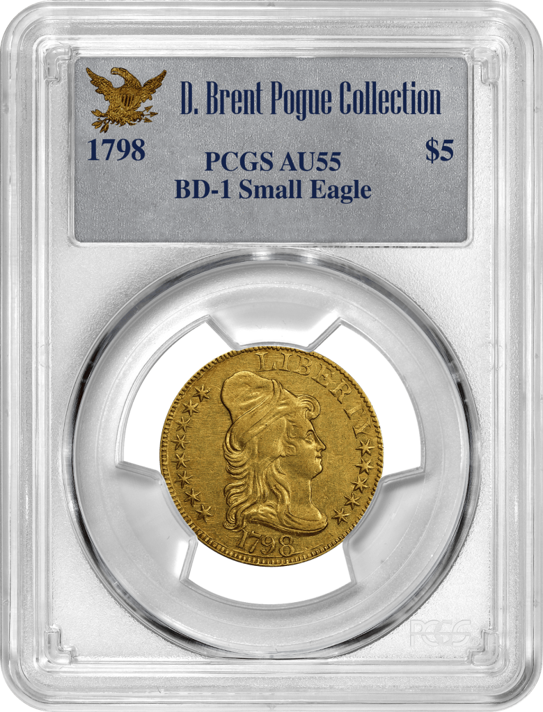 1798 $5 Small Eagle, BD-1, PCGS AU55