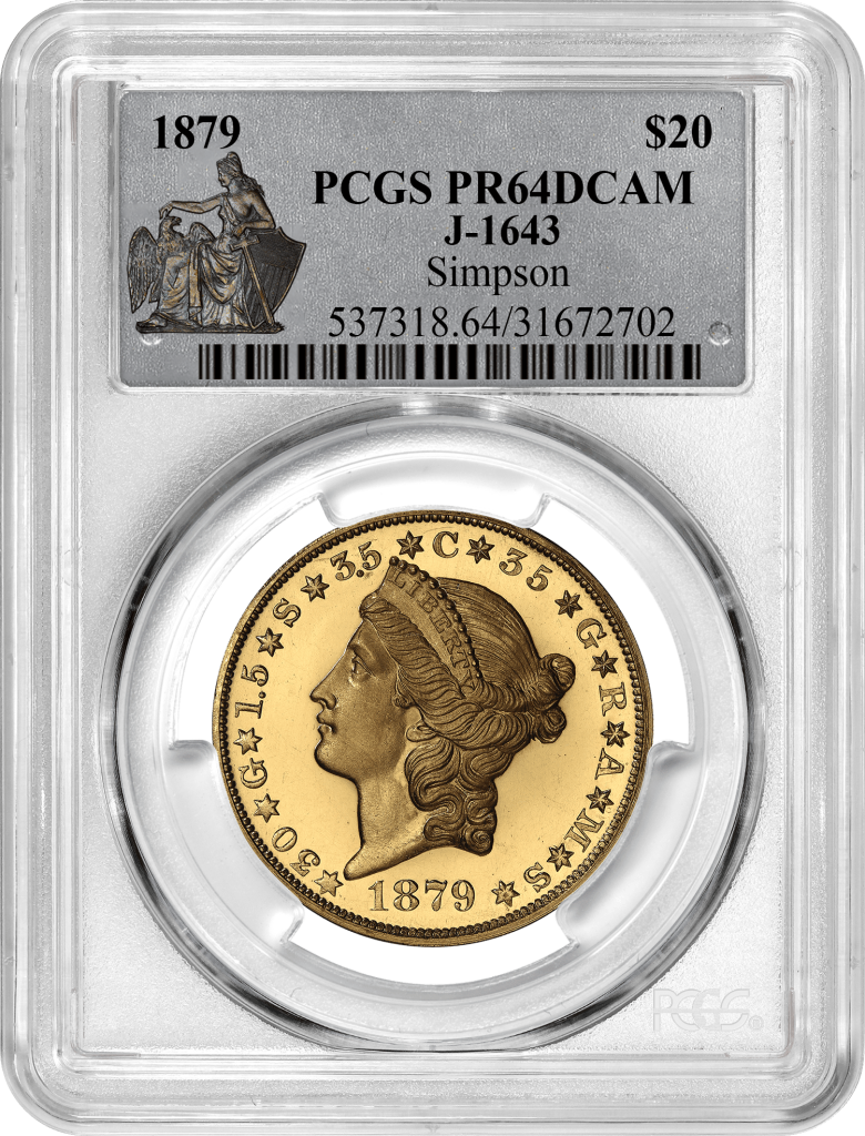 1879 $20 Liberty Head Quintuple Stella, PCGS PR64DCAM
